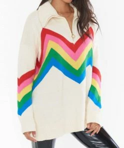 New 𧨠Show Me Your Mumu Weston Half Zip Pullover in Rainbow Slope Knit for π© women β¨