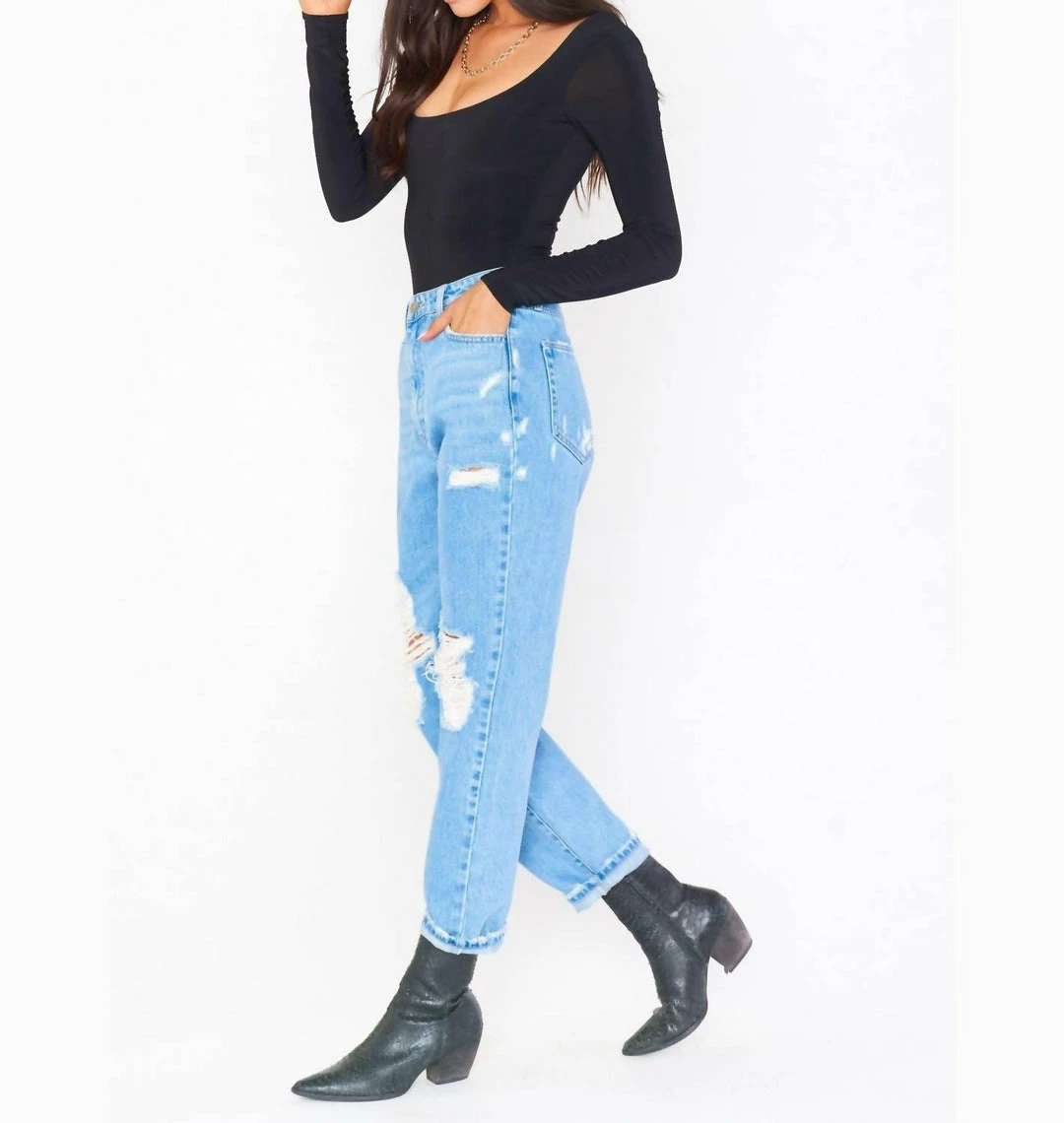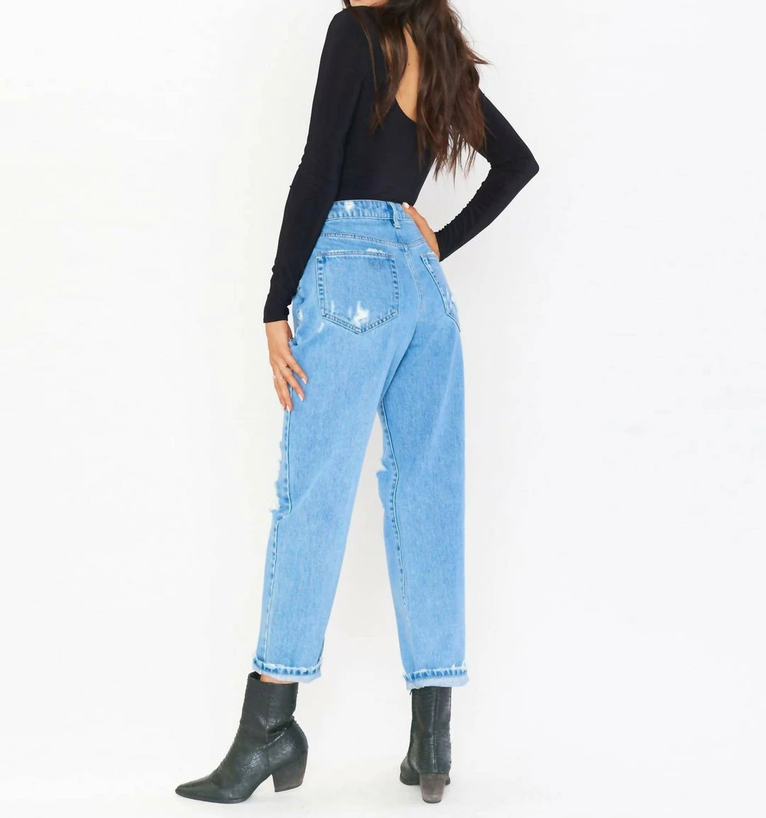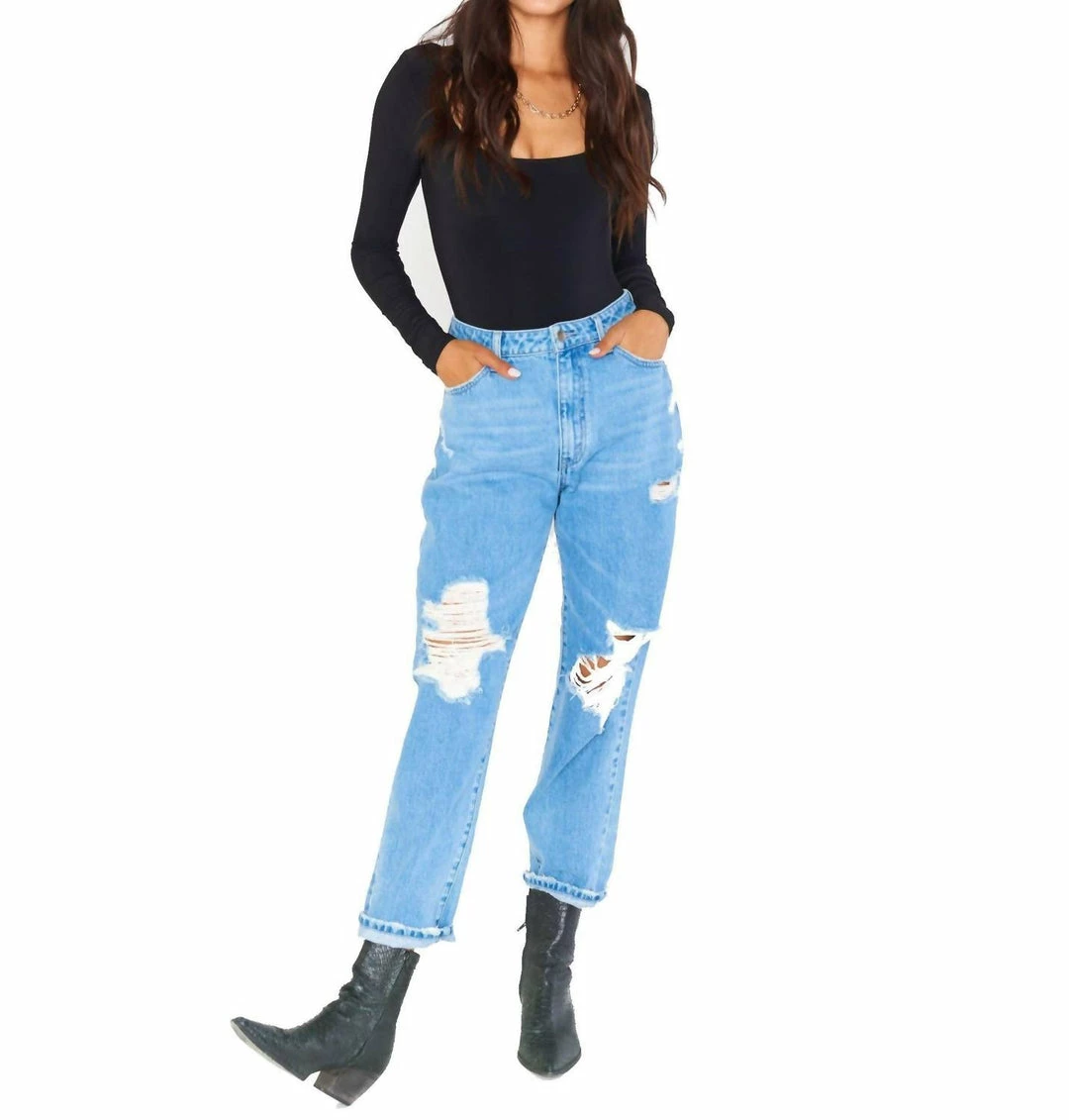 These mid-tone Boston Boyfriend Jeans is theΓΒ trendiestΓΒ pair of denimf eaturing button & zip fly, pockets, and distressed knee and thigh, these jeans are perfect for that chic-rough-around-the-edges vibe.