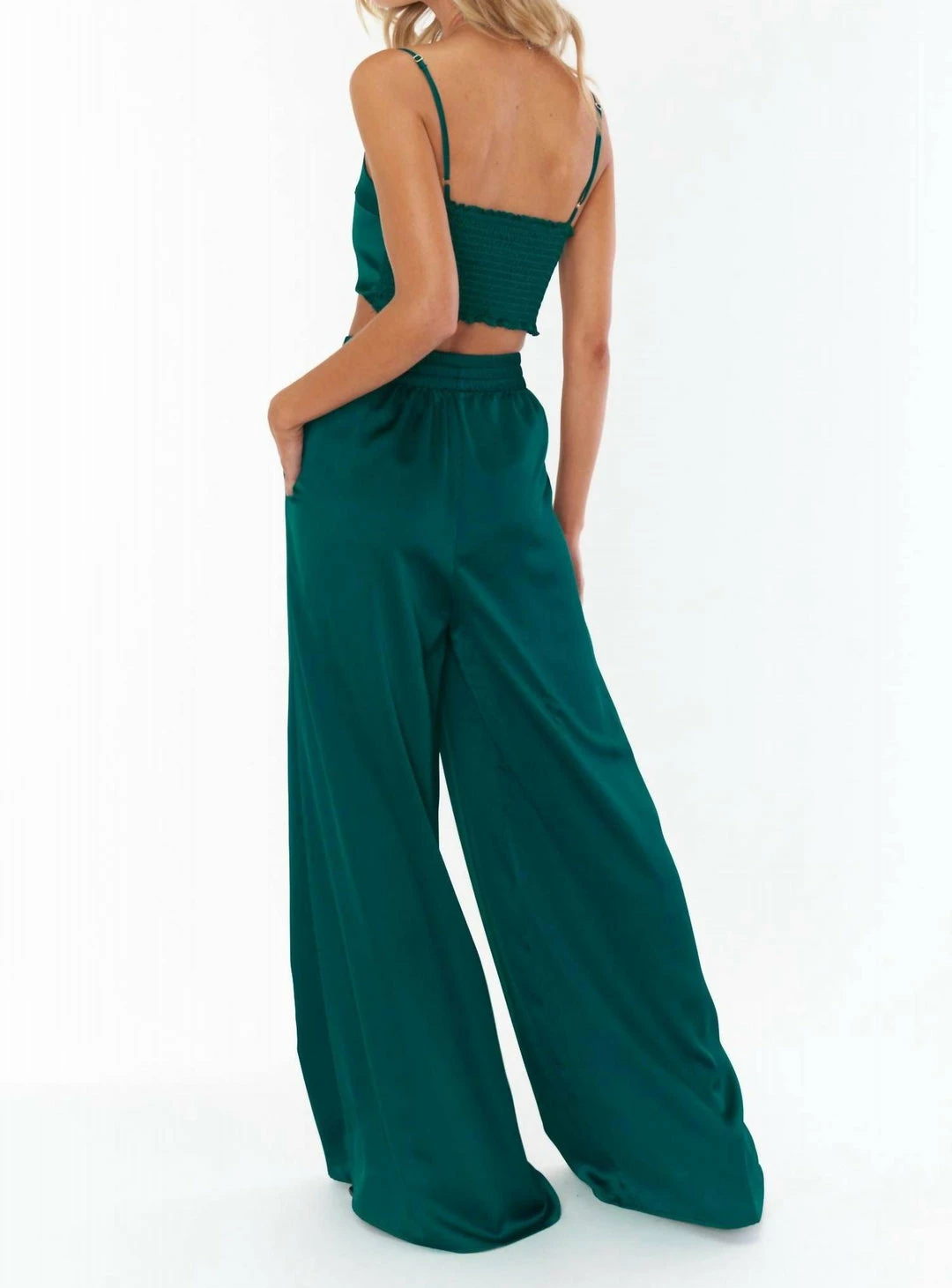 This silky little number features a straight neckline with spaghetti straps and a smocked back for the perfect fit.ΓΒ *Luxe Satin**Partially Lined*Adjustable straps*Smocked back