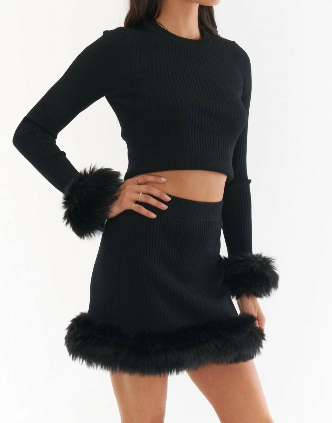 Worth making plans for! The Fran Skirt is a super cute mini with a faux fur hem. Perfectly paired back with the Fran Top and booties.