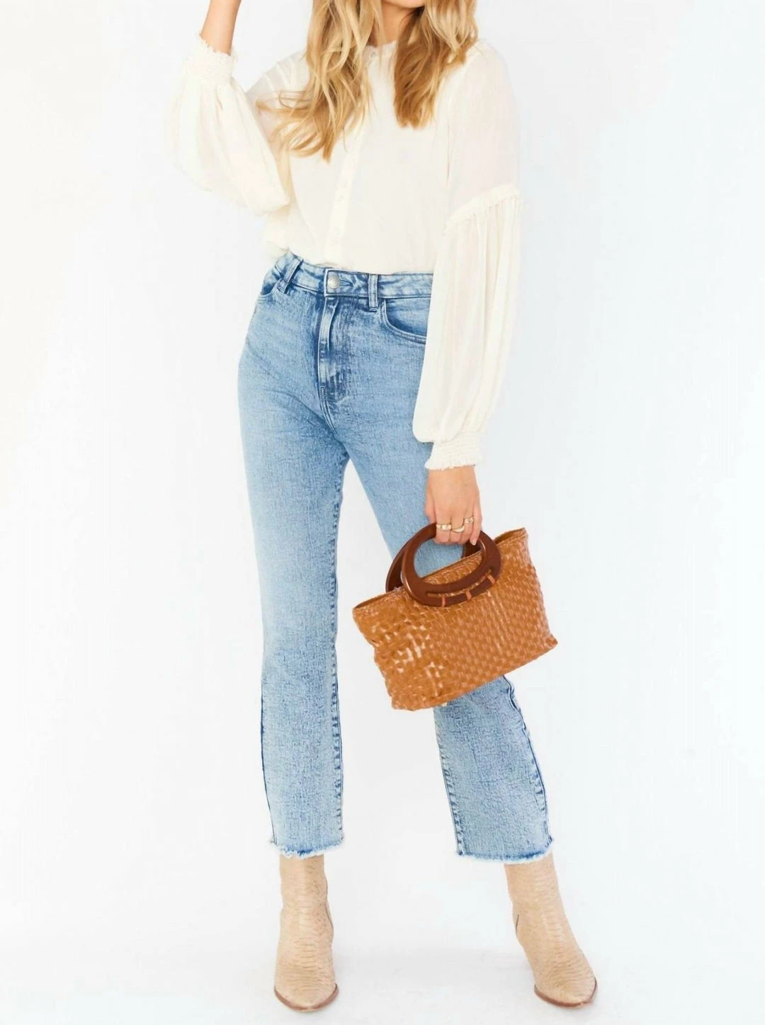 This is the bohemian blouse of our dreams! Feel beautiful and breezy in our Ivory chiffon, cinched bubble sleeves, and adorable button up detailing. Wear flowy with denim shorts or tucked into a high waisted pant for a super chic but easy to wear look.