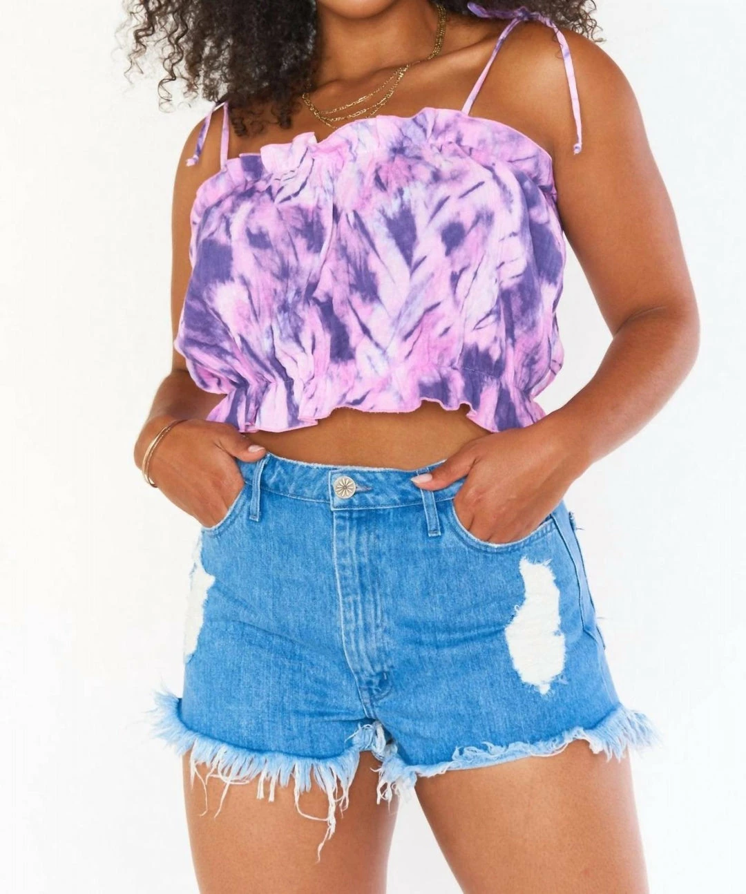 Add an effortless pop of color to your closet with this purple tie dye crop top! Tie the straps up, or tuck in for a tube top. Throw on with the matching Aiden Skirt or pair her with your fave denim shorts!