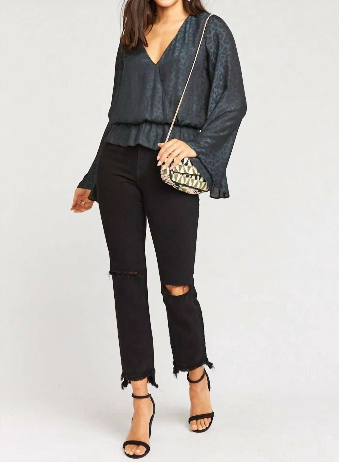 Add a little flare to your life with this bell sleeved silky top. Easy to pair with jeans or a fun skirt!