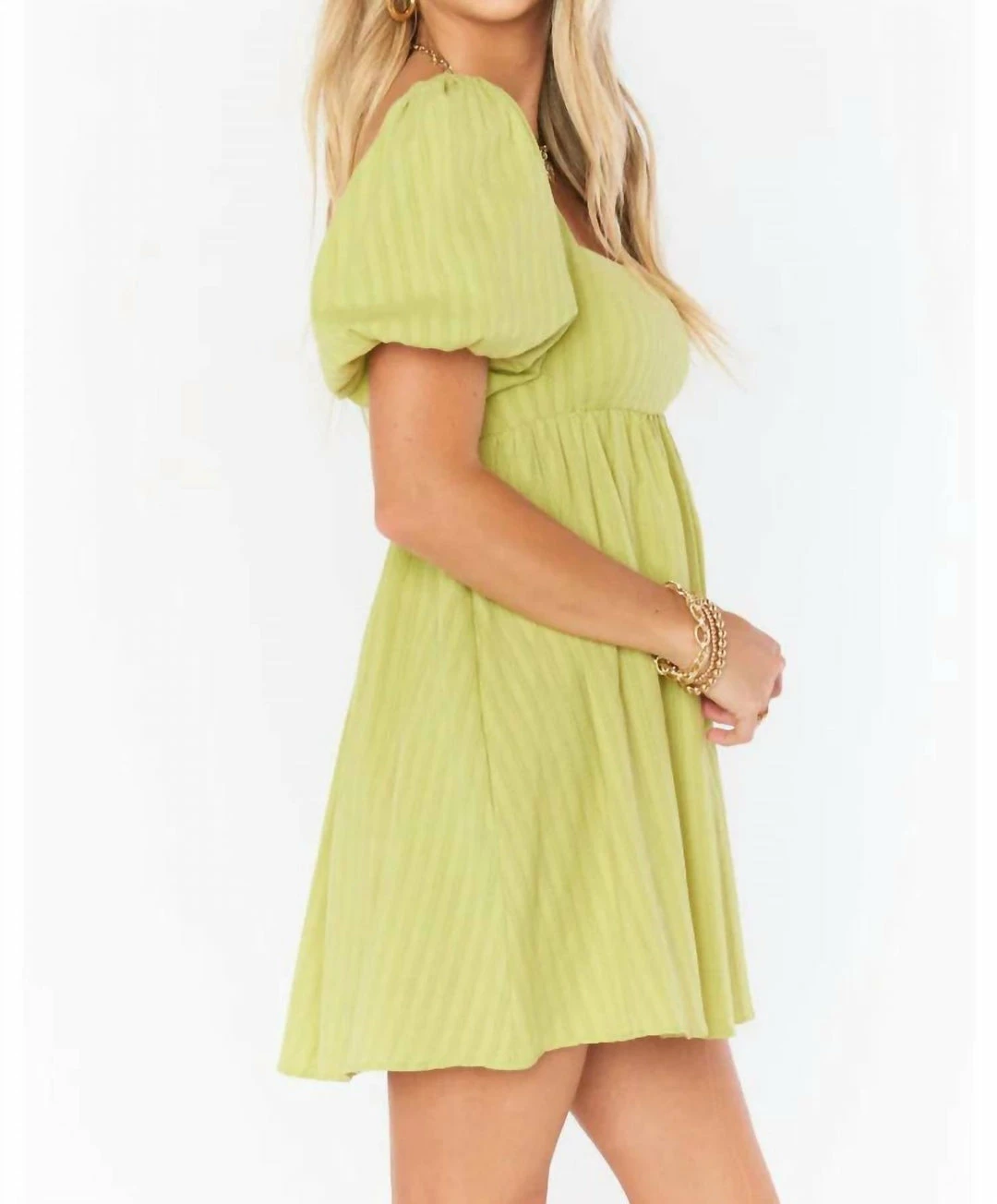 A cool square neckline next to perfectly poofed sleeves are perfectly contrasted to flatter a range of bust sizes and the elastic smocking in the back allows for a perfect fit!DetailsSquare ecklinePuff sleeveElastic smocking in back