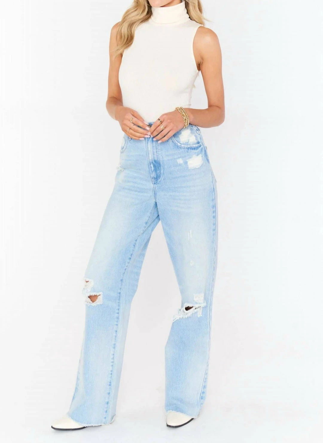 The Turtle Bodysuit is shaped with a lightweight ribbed knit and self-lined. A chic turtleneck meets a sleeveless bodice and ends with convenient snaps at the crotch. We love this piece with distressed denim.
